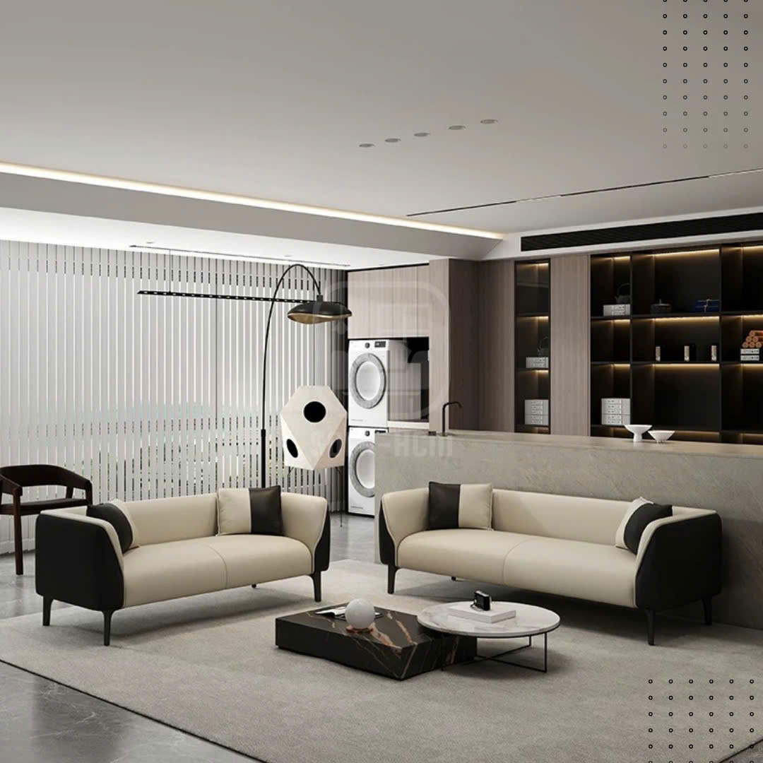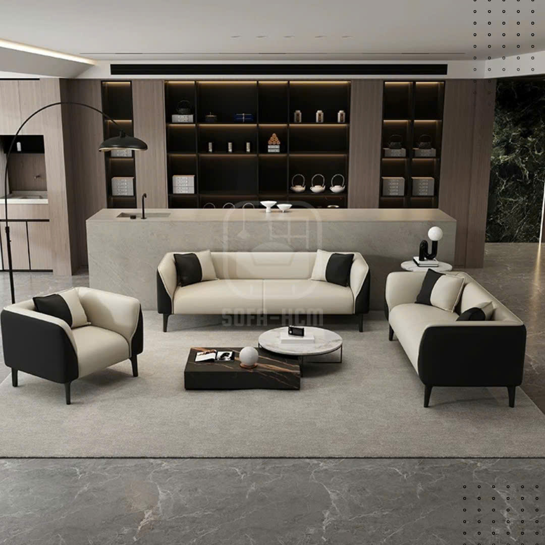 sofa băng da cao cấp phối trắng đen hiện đại